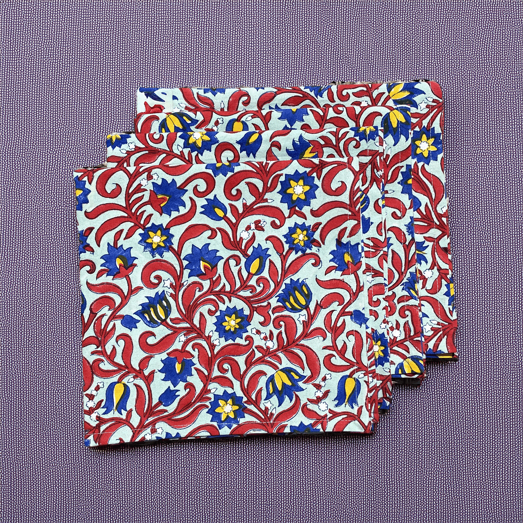 Beautiful, hand-printed cotton napkins with three signature Chikka Chikka floral designs